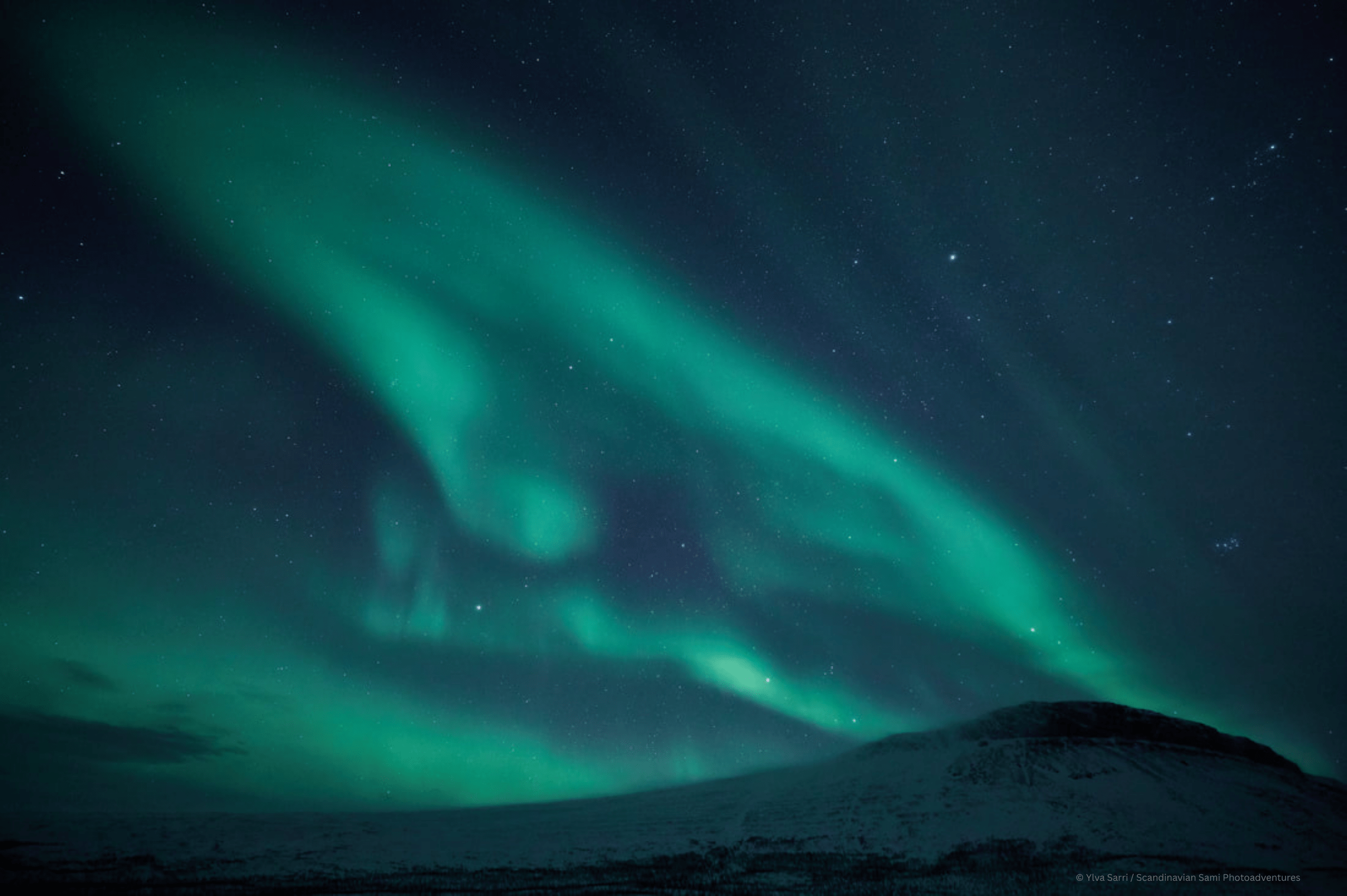 The tour begins by driving into the night, keeping watch for the first hint of green auroras in the sky. When we emerge from the darkness, approximately 1.5 hours later, the village of Abisko lies before us, nestled against the mountain. Here, we serve a delicious three-course dinner giving you the chance to learn about the history of the area, Sámi culture, nature, and the science of the Northern Lights in a cozy atmosphere.